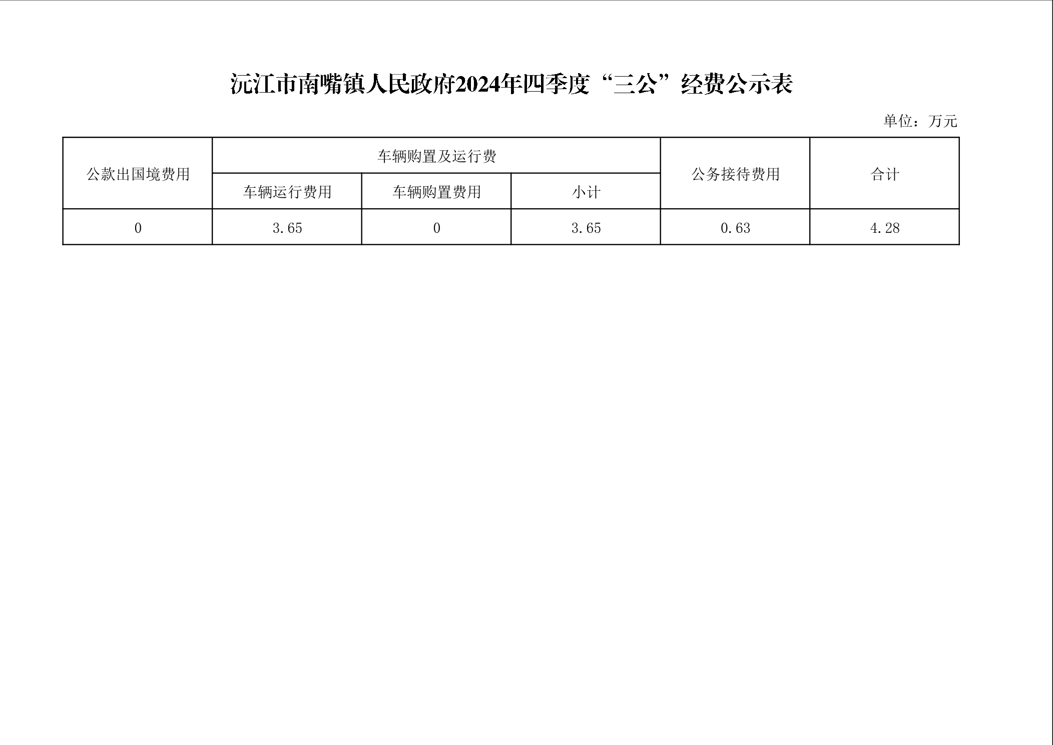 沅江市南嘴鎮(zhèn)人民政府2024年四季度“三公”經(jīng)費公示表