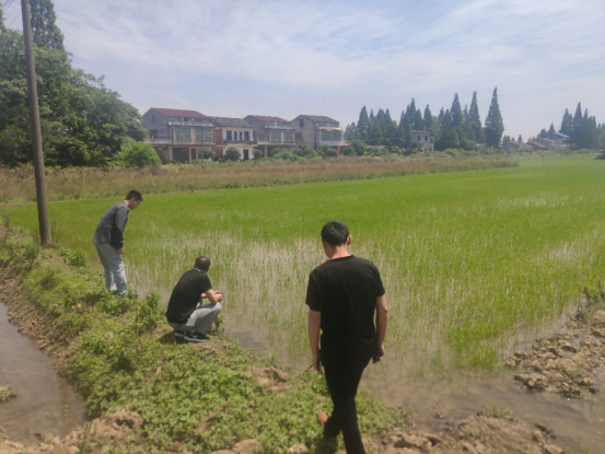 (三)為村民稻蝦養殖重大風險防范提供保障,工作人員與保險公司對稻蝦保險現場進行勘探工作。