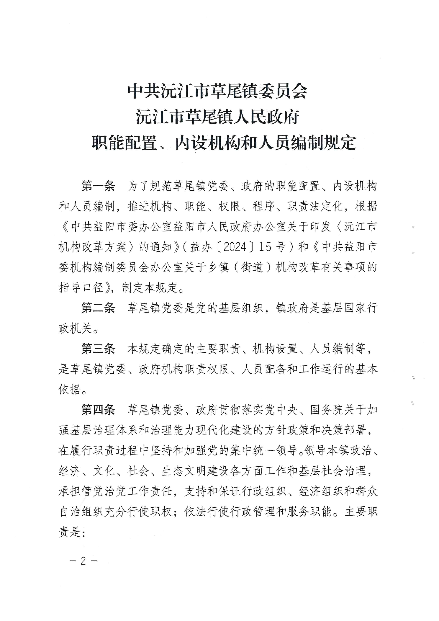 中共沅江市草尾鎮(zhèn)委員會(huì)沅江市草尾鎮(zhèn)人民政府職能配置、內(nèi)設(shè)機(jī)構(gòu)和人員編制規(guī)定