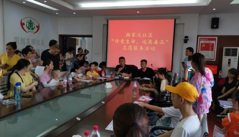 7月12日,志愿服務活動以“珍愛生命,遠離毒品”禁毒知識講座開始,在韓家汊社區服務中心,通過有趣的互動游戲,體驗宣傳場景模擬活動,組織青少年深入學習禁毒知識內容,提高青少年識毒、防毒、拒毒的能力。為了深化禁毒意識,發動小志愿者們到臨街商鋪、公園廣場等地進行禁毒知識宣傳單的發放,向居民詳細講解《禁毒法》和《戒毒條例》等相關法律法規,強化廣大居民的防毒禁毒意識。