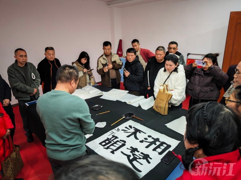 講座結束后,現場隨即開展了書法交流活動。曹雋平與沅江市書法家協會成員、文藝愛好者們共同揮毫潑墨,圍繞書法傳統技法與現代創新思路展開深入探討;顒蝇F場氛圍高漲,參與者踴躍展示作品,分享創作心得。一位書法愛好者由衷感嘆:“曹館長的講解讓我對書法的魅力有了全新認識,它不只是藝術創作,更是一種修身養性的生活態度。”