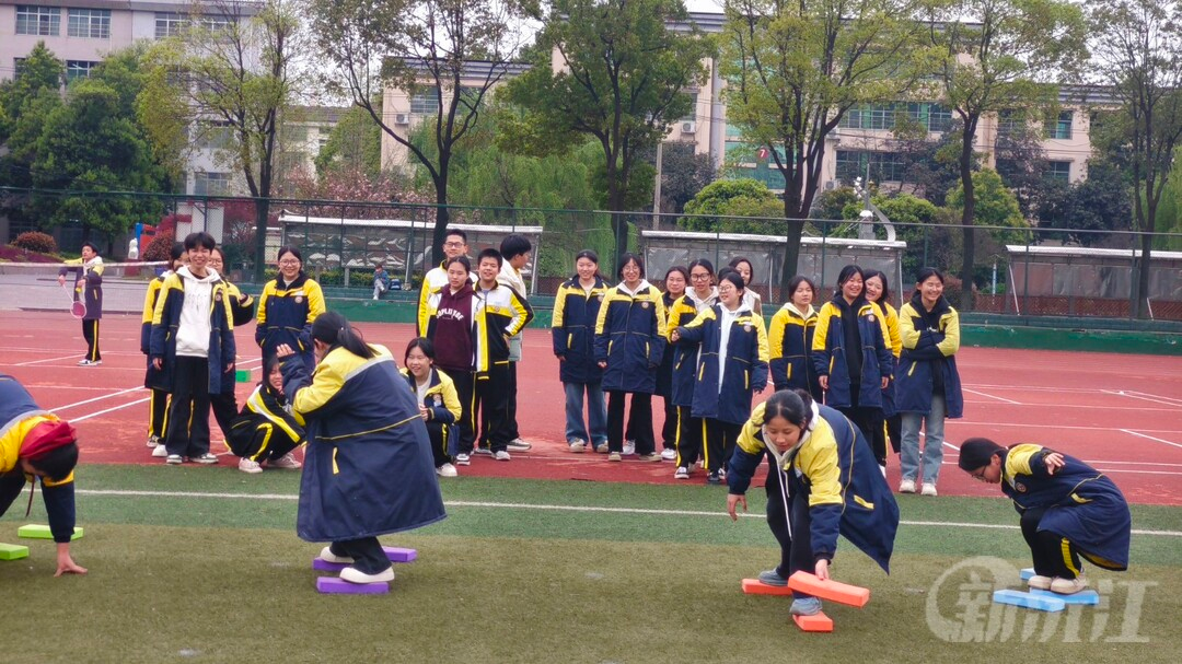 在“摸石頭過河”游戲中,學生們需手腳協調,依次踩著泡沫板快速抵達終點。這不僅考驗個人的身體協調性,更讓學生們在相互加油打氣、出謀劃策的過程中,深刻體會到團隊的強大力量,現場氣氛熱烈非凡。