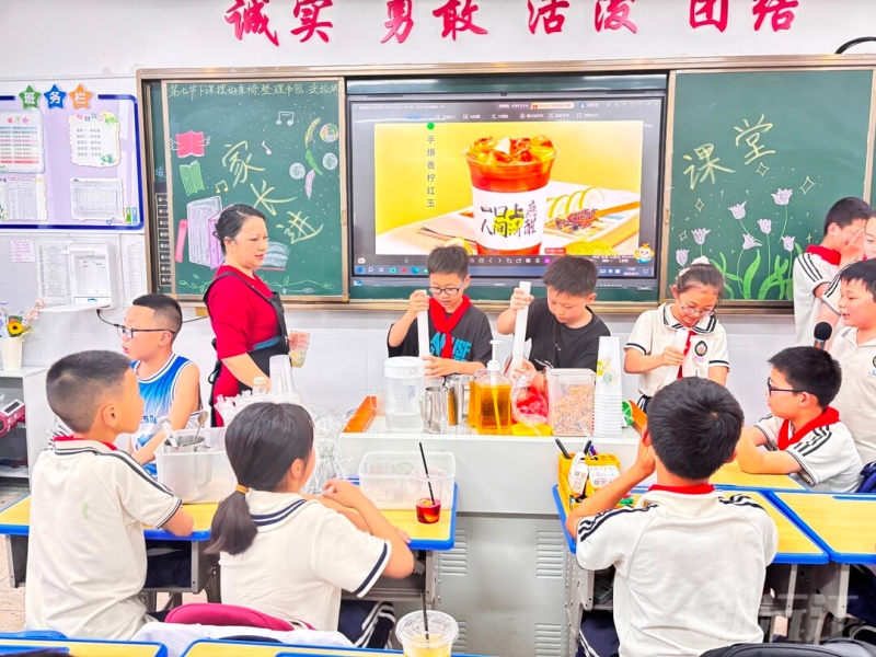 活動(dòng)中,家長(zhǎng)們精心準(zhǔn)備,帶著裝滿童年記憶的“百寶箱”走進(jìn)教室,向孩子們介紹爸爸媽媽小時(shí)候的玩具和游戲,帶領(lǐng)孩子們來(lái)到操場(chǎng),親身體驗(yàn)滾鐵環(huán)、抽陀螺、丟手絹等傳統(tǒng)游戲。此外,家長(zhǎng)們還教孩子們制作各種美食:精致小巧的壽司、清爽可口的涼粉、香氣四溢的檸檬茶、酸辣開胃的涼拌菜等,不僅滿足了孩子們的味蕾,更讓他們?cè)趧?dòng)手實(shí)踐中收獲了快樂(lè)與成長(zhǎng)。