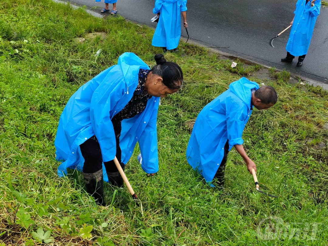 在草尾鎮(zhèn)長樂中隊(duì)值守堤段,“新老”兩位支書齊上陣,陳蘭英與志愿者們并肩作戰(zhàn),冒雨前行,清基掃障,開溝瀝水,幾乎全身濕透,手中的鐵鍬和鐮刀卻在不停揮動(dòng),絲毫不遜色于其他志愿者。“我是勞動(dòng)人民出身,人也高大,干活也習(xí)慣了,可不比別的男同志差”。經(jīng)過2個(gè)多小時(shí)的連續(xù)奮戰(zhàn),他們完成了值守堤段約800米的清基掃障掃尾工作。