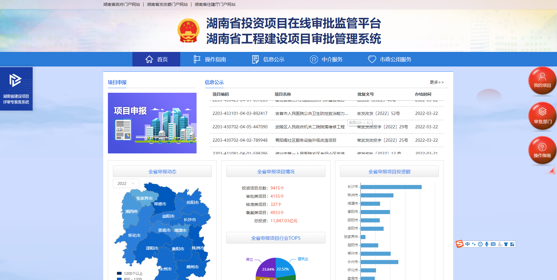 1.登錄湖南省投資項目在線審批監管平臺(湖南省工程建設項目審批管理系統)http://www.hntzxm.gov.cn/home辦理項目立項審批、核準、備案等有關業務。