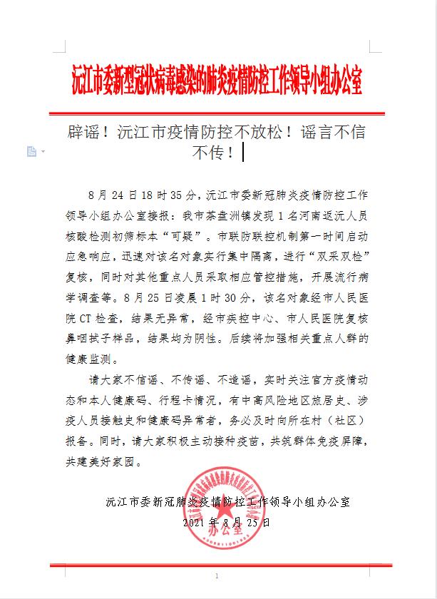 辟謠!沅江市疫情防控不放松!謠言不信不傳!