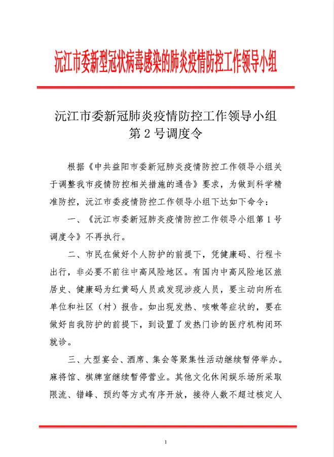 疫情防控 | 沅江發(fā)布第2號(hào)令