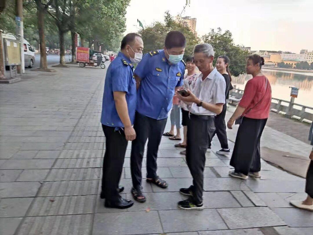 晚上7點(diǎn),市城管執(zhí)法局的10支執(zhí)法小分隊(duì)在瓊湖公園集合,部署各自巡查區(qū)域,對來往市民進(jìn)行隨機(jī)抽查。傍晚時(shí)分,公園附近有不少市民散步休閑,執(zhí)法人員挨個(gè)進(jìn)行詢問,仔細(xì)核驗(yàn)健康碼,查看其疫苗接種情況;同時(shí),向廣大市民宣傳沅江市疫情防控工作要求。市民們紛紛表示理解和支持,都愿意配合執(zhí)法人員出示健康碼。