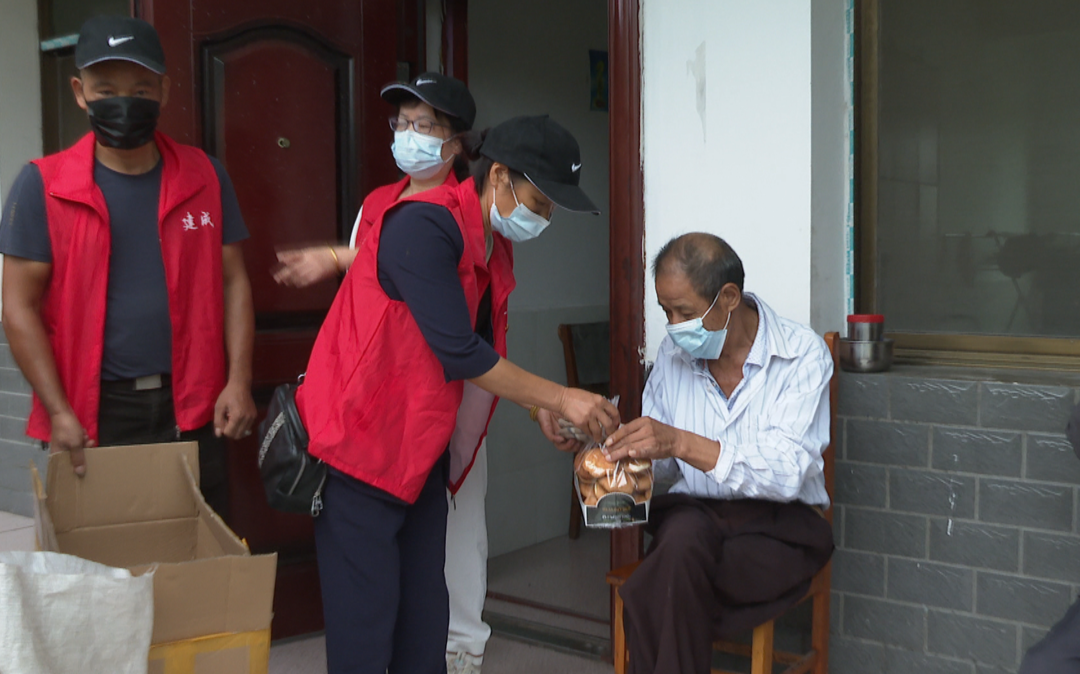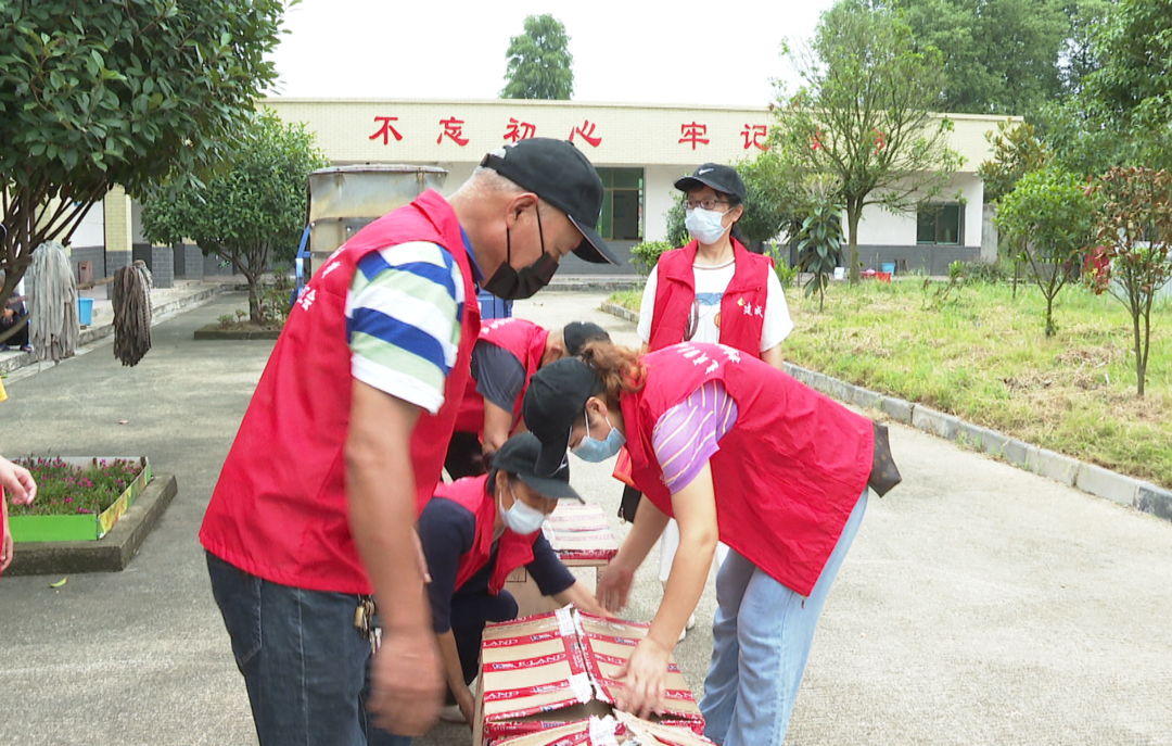上午10點,草尾鎮上碼頭敬老院熱鬧非凡,一群身著紅馬甲的愛心人士將一袋袋面包分發到老人們手中,與他們親切交流,向他們致以親切的問候。與此同時,他們還將一箱箱打好包的御寒衣服、水果、食品等物資搬運到敬老院內。