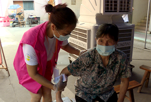 在草尾鎮、陽邏洲鎮的醫院內,婦聯志愿者們正在維護現場秩序,提醒排隊的居民戴好口罩、注意間隔距離,并協助醫護人員嚴查“三碼”,為等待接種疫苗的居民送上礦泉水等。與此同時,婦聯志愿者們還督促周邊商鋪落實防疫要求,聯動商戶共同做好社會面防控工作。