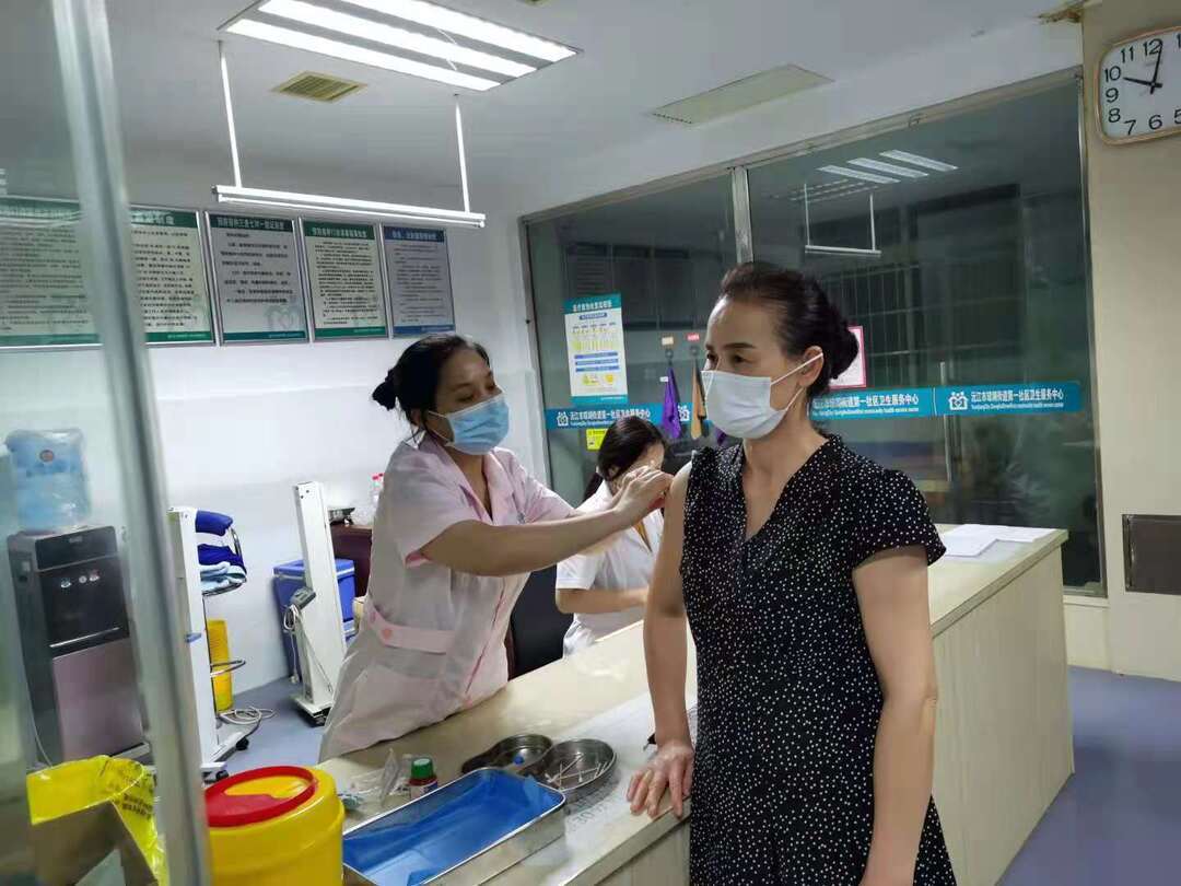 瓊湖街道第一社區衛生服務中心的財務科長申先梅自從疫苗接種工作啟動以來,她就被抽調至接種點負責登記工作,今天的她已經工作了近14個小時,但她依舊用良好的精神面貌去接待前來接種的市民。