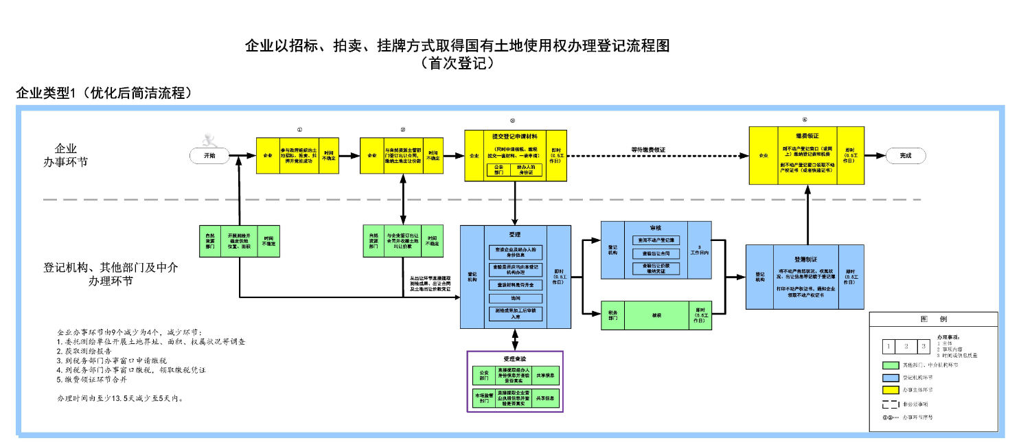 企業(yè)以招標(biāo)、拍賣(mài)、掛牌方式取得國(guó)有土地使用權(quán)辦理登記流程圖(首次登記)