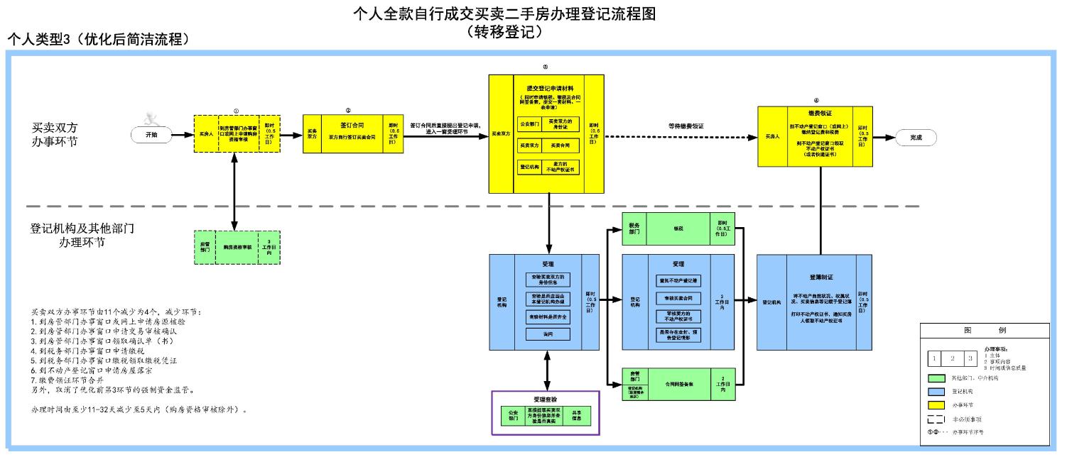 個人全款自行成交買賣二手房辦理登記流程圖(轉移登記)