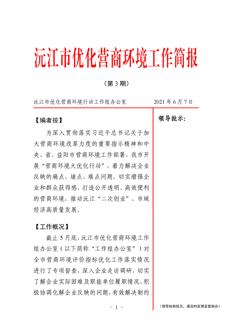 沅江市優化營商環境工作簡報(第三期)