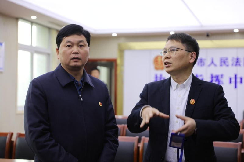 在市人民法院,楊智勇一行先后參觀了該院訴訟服務中心、執行指揮中心、文化走廊、職工影院、道德講堂、職工之家等地,通過實地查看、聽取匯報,詳細了解了立案程序、案件辦理、隊伍建設等情況。