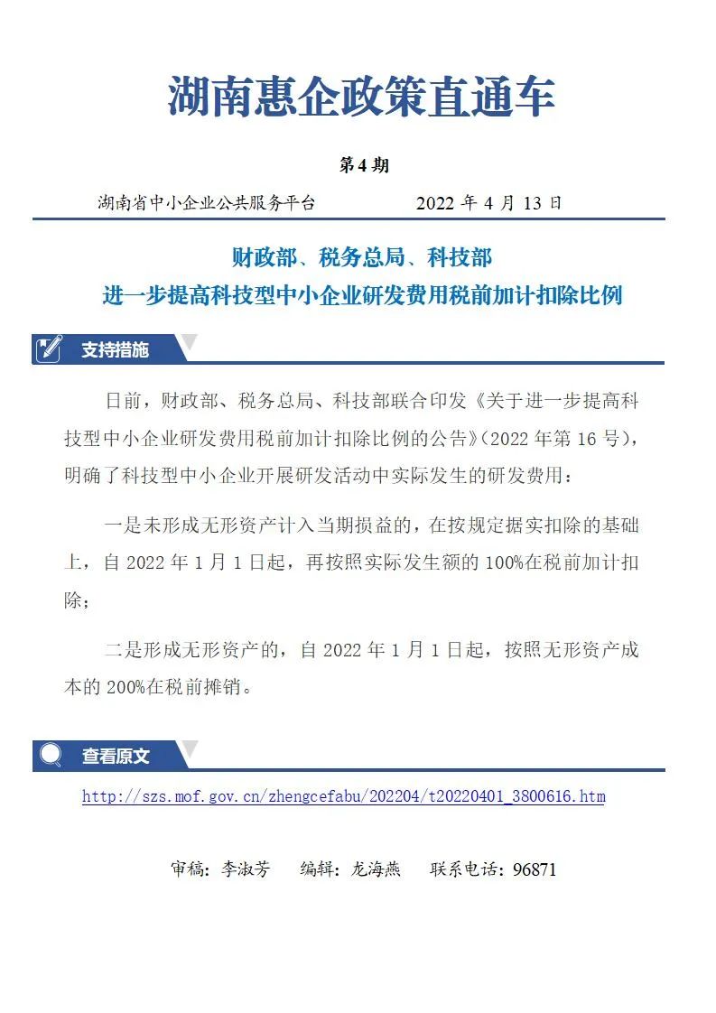 財政部、稅務總局、科技部進一步提高科技型中小企業研發費用稅前加計扣除比例
