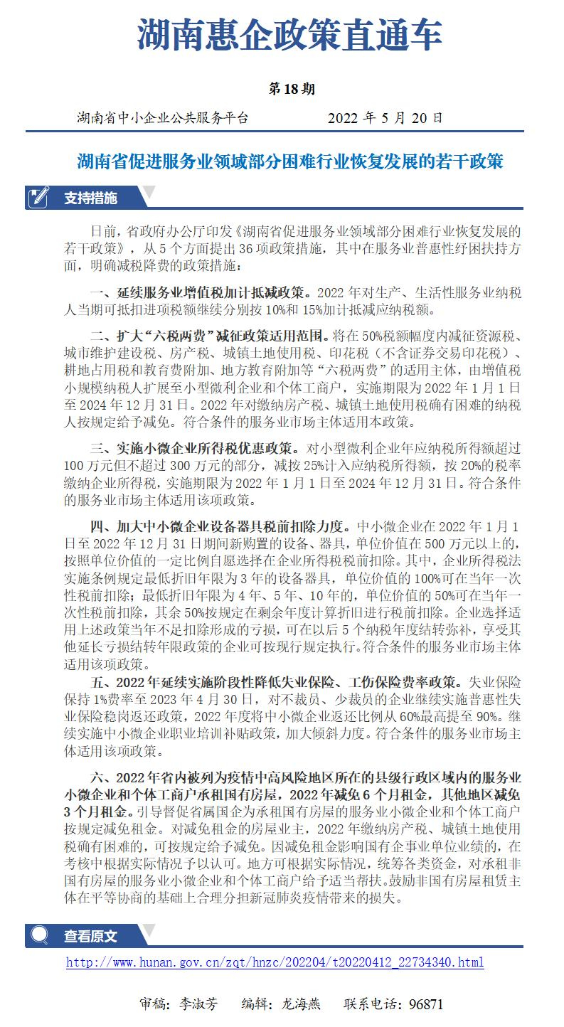 湖南省促進服務業領域部分困難行業恢復發展的若干政策