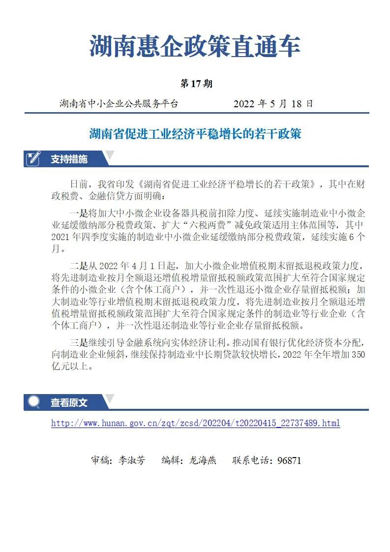 湖南省促進(jìn)工業(yè)經(jīng)濟(jì)平穩(wěn)增長(zhǎng)的若干政策