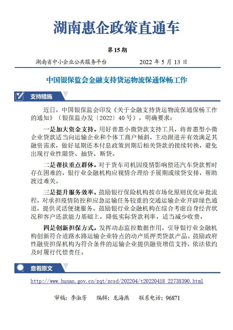 中國銀保監(jiān)會金融支持貨運物流保通保暢工作