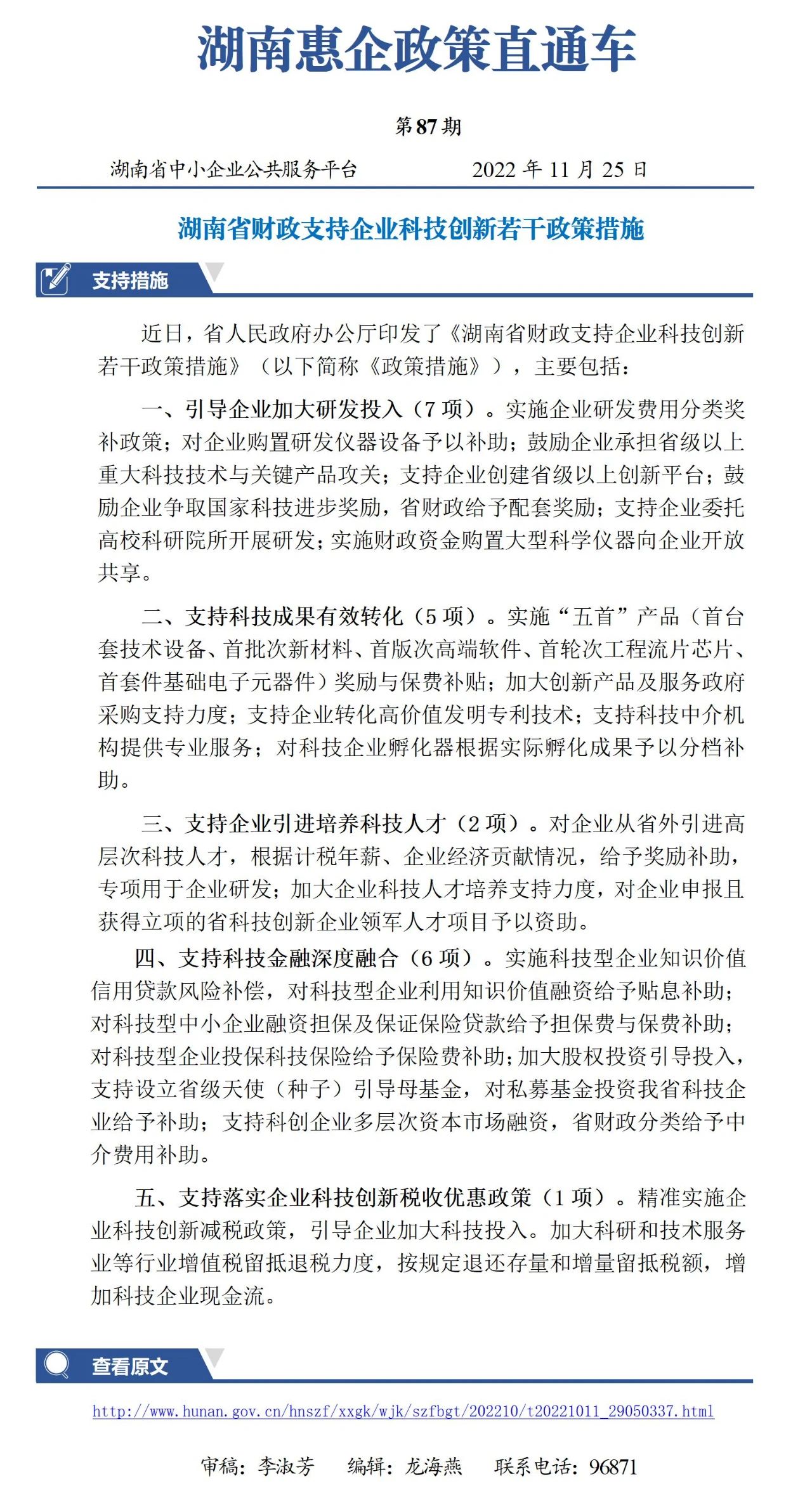 湖南省財政支持企業(yè)科技創(chuàng)新若干政策措施