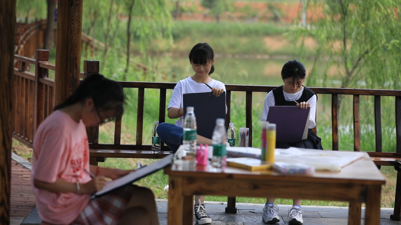 家鄉美了,在外地從事藝術的學子們也紛紛回到家鄉,她們掏出畫筆,描繪這洞庭湖畔的美景,抒發自己對家鄉的熱愛。