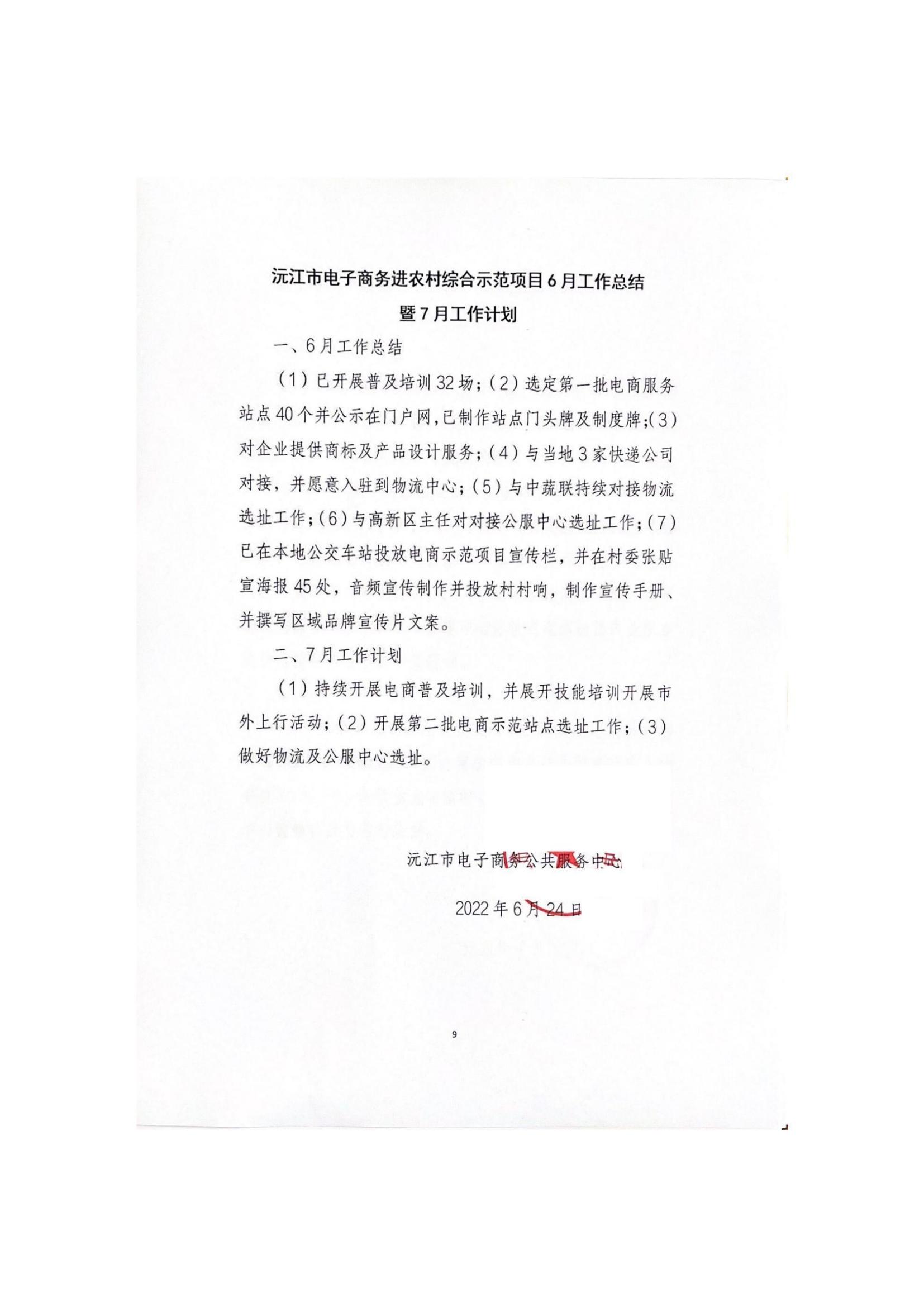沅江市電子商務進農村綜合示范項目6月工作總結暨7月工作計劃