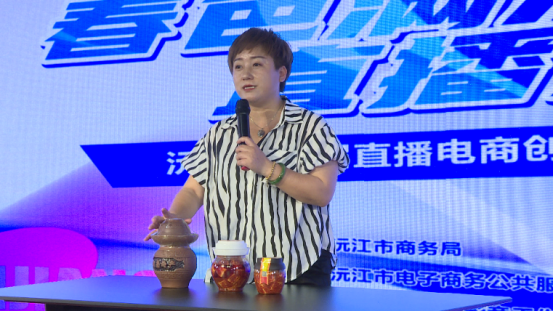 在比賽現(xiàn)場,每位主播化身為選手,將臺下的評委與觀眾想象成直播間的顧客,賣力地介紹著自己手中的沅江特產,在展現(xiàn)自己的帶貨能力的同時,也將家鄉(xiāng)的美味帶給大家。