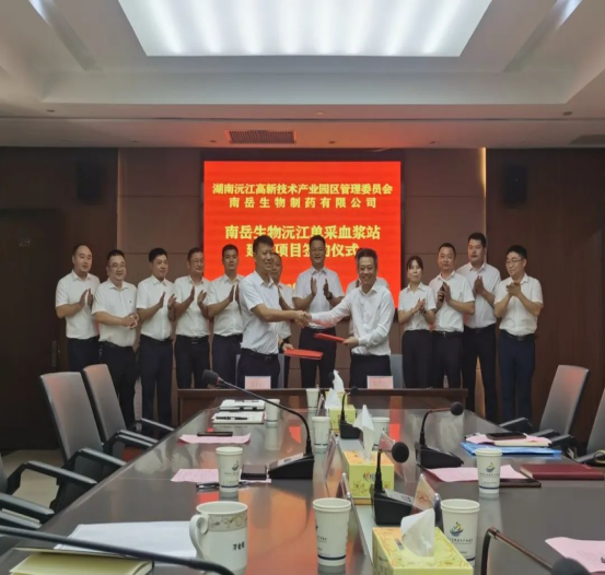 9月20日上午,沅江高新區與南岳生物制藥有限公司舉行南岳生物沅江單采血漿站建設項目簽約儀式。沅江高新區黨工委書記李選才,管委會主任彭龍,南岳生物制藥有限公司黨委書記、董事長肖漢族及沅江市商務局、市城投集團等相關負責人出席簽約儀式。