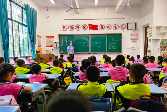 課上,安委會成員單位干部首先通過交通安全PPT圖文講解、播放警示視頻的授課方式,從行走安全和乘車安全入手,并結合“減量控大”和“一盔一帶”工作要求,有針對性地向孩子講解如何安全過馬路、如何識別交通標志及其作用、如何安全乘車等告知孩子們基本交通安全知識。隨后,通過有獎互動問答,讓他們在寓教于樂中收獲交通安全知識,并且該針對校區上下學接送學生車輛較多的實際情況,切實提醒學生牢記不要在馬路上跑跳打鬧、不要突然橫穿馬路、不要在車輛行駛區域和司機視線盲區逗留,自覺遵守交通法規,摒棄交通陋習,養成安全、文明的出行習慣。最后,安委會成員單位干部在向孩子們發放宣傳紀念品時,倡導小朋友們要把學習到的交通安全知識傳遞給家人,要做家人朋友的交通安全監督員,達到“教育一個學生,帶動一個家庭,文明整個社會”的目的,發揮“小手拉大手”的作用,實現校園安全“家校共管”,社會穩定人人盡責的濃厚氛圍。