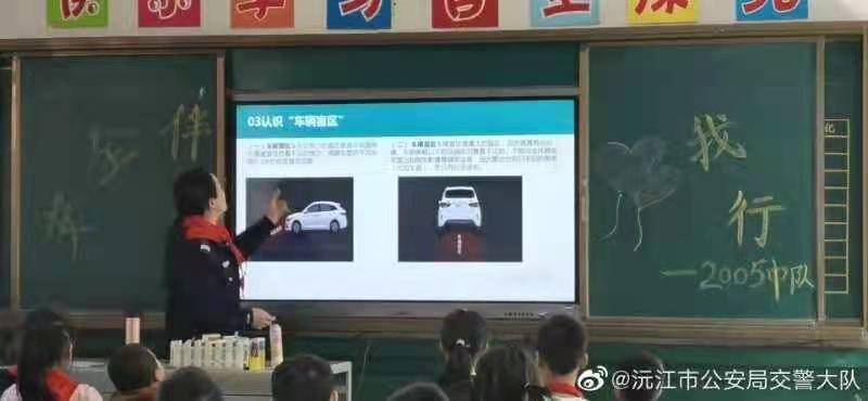 為進(jìn)一步增強(qiáng)廣大中小學(xué)生日常交通安全常識和自我保護(hù)能力,從11月中旬開始,沅江交警大隊組織民輔警深入中小學(xué)校開展“知危險、會避險”交通安全主題宣傳活動。這次交通安全主題宣傳活動,精心制作了PPT課件,以圖文并茂和現(xiàn)場講解的方式,讓學(xué)生了解大型車輛盲區(qū)、乘車走路以及過馬路注意事項、一盔一帶等交通安全知識。同時,宣傳民輔警與學(xué)生開展了交通安全常識互動,通過各種互動小游戲,加深了學(xué)生對交通安全知識的認(rèn)知。還給學(xué)生發(fā)放交通安全宣傳資料,多渠道、全方位提升學(xué)生自我防范意識,這種形式的誘動深受師生歡迎和喜愛!爸kU、會避隊”第一場主題活動11月13日在中心城區(qū)桔園學(xué)校進(jìn)行,陸續(xù)在各中小學(xué)校展開。