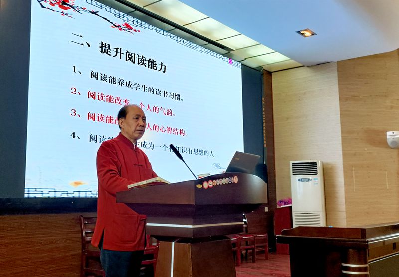 劉孝聽(tīng)在宣講中傳達(dá)了全國(guó)政協(xié)關(guān)于推動(dòng)中華優(yōu)秀傳統(tǒng)文化進(jìn)課本、進(jìn)課堂、進(jìn)校園網(wǎng)絡(luò)議政遠(yuǎn)程協(xié)商會(huì)議精神。他從國(guó)家領(lǐng)導(dǎo)人論傳統(tǒng)文化、國(guó)學(xué)和經(jīng)典的定義、國(guó)學(xué)的主要內(nèi)容、主要精神、國(guó)學(xué)對(duì)學(xué)校教育的重要意義等幾個(gè)方面深入淺出闡述了作為一名教師,如何在工作中、生活中立德養(yǎng)德,修身做人。他倡導(dǎo)大家多讀優(yōu)秀傳統(tǒng)文化書(shū)籍,經(jīng)常接受優(yōu)秀傳統(tǒng)文化熏陶,建立文化自信,讓中華傳統(tǒng)文化真正成為我們的精神家園和民族根基。