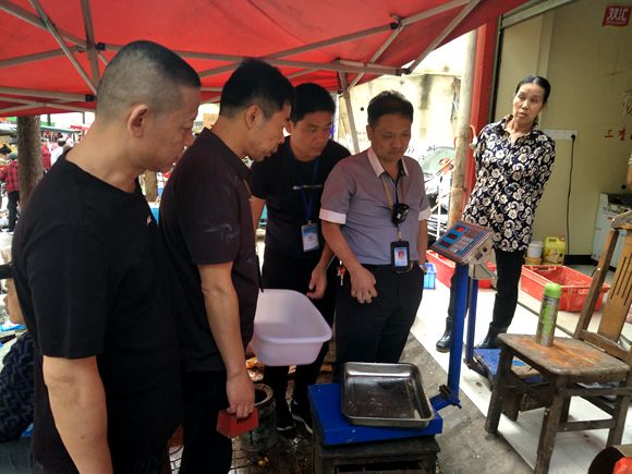 5月27日,執法人員先后來到西區集貿市場、金富城集貿市場和江南集貿市場,用標準砝碼對商戶電子秤逐一檢定,并向經營者宣講計量法律法規,提高主體責任意識,打造誠信計量、公平規范的市場氛圍。
