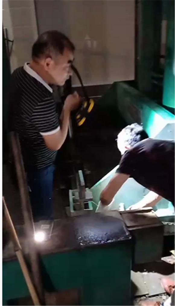 (深夜,正在搶修中轉站設備的環衛工作人員)