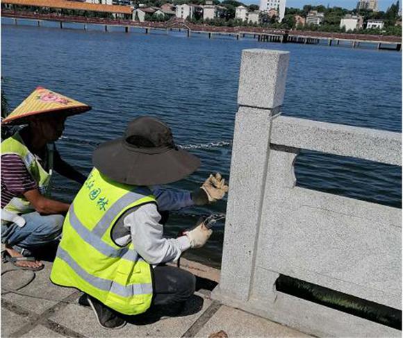 市園林綠化服務中心多措并舉、嚴密防控,把防溺水安全宣傳作為夏季安保工作的第一要務,在城區(qū)5大公園水體周邊醒目位置設置防溺水宣傳牌20塊,張貼宣傳標語90處;在各公園防護欄關口安裝安全防護鏈110條,并對防護欄松動處進行修護、加固。同時,加強沿湖巡邏頻次,每天派30人在公園巡查管控,發(fā)現游客危險行為第一時間制止。