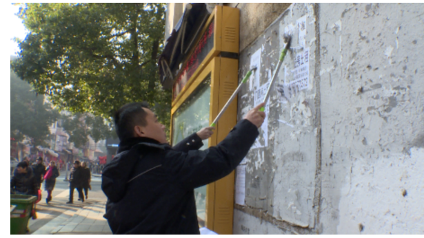 整治行動中,執法人員穿梭于大街小巷,利用刀鏟,對主干道燈桿、墻壁、店鋪櫥窗等地方的小廣告進行逐一清理,做到“零容忍、無死角”。在清除“牛皮蘚”的同時,執法人員還沿路對違規占道經營行為進行整治,執法人員堅持文明執法、規范執法,主動幫助商戶店主搬抬店外物品。