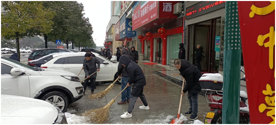 為保證居民出行安全,保障周邊道路暢通,上午830分,雪花還在飄飄灑灑的飛舞,發改局全體工作人員冒著刺骨的寒風,對機關沿線路段的積雪進行了清掃。天氣雖然寒冷,但黨員領導干部帶頭行動,同志們干勁十足,呈現出一派熱火朝天的鏟雪場景