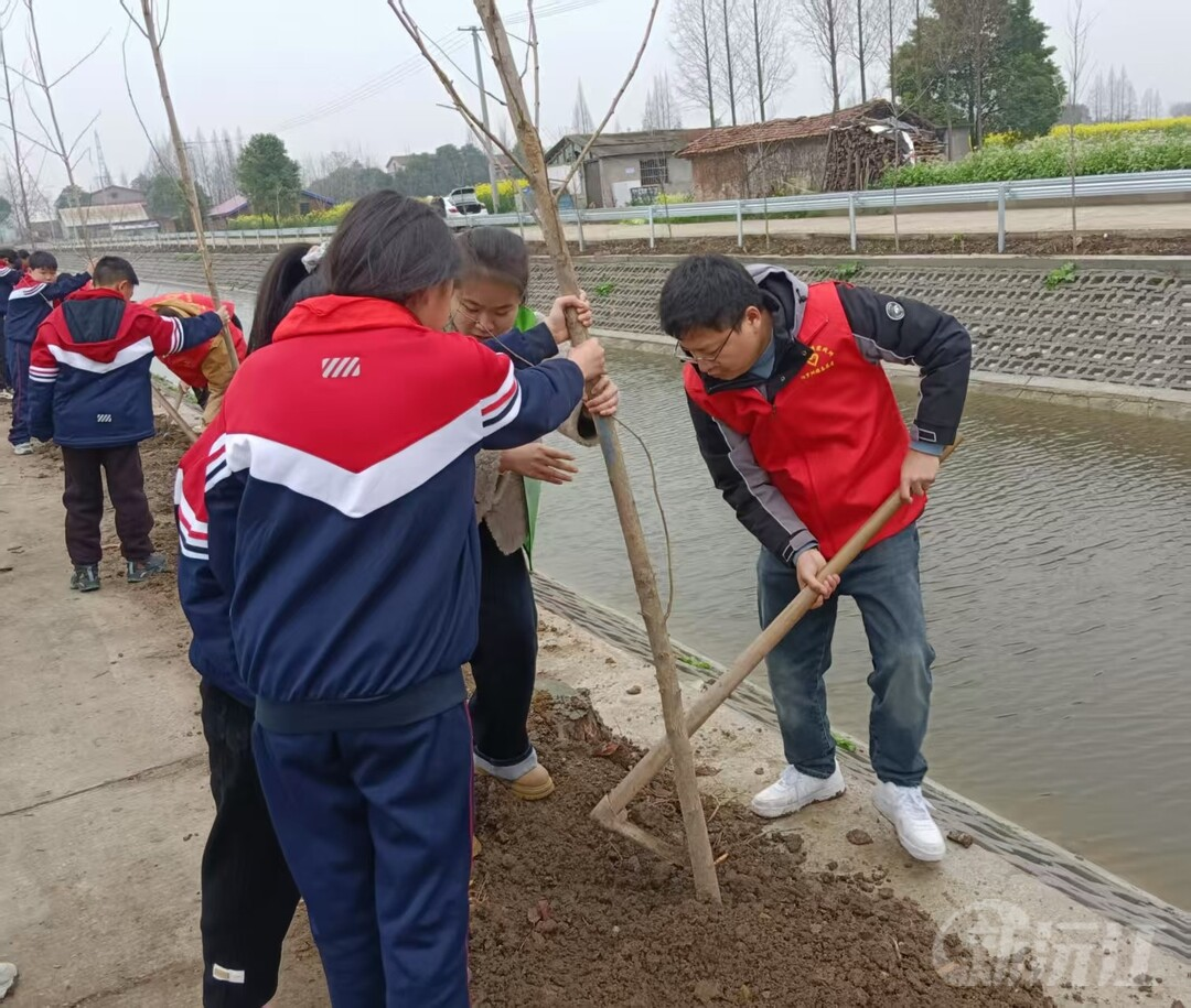 活動(dòng)現(xiàn)場(chǎng)呈現(xiàn)出一片熱火朝天的勞動(dòng)景象。同學(xué)們?nèi)齼沙山M,分工明確、配合默契。揮鍬鏟土、扶苗填坑、提水澆灌,每一個(gè)步驟大家都認(rèn)真細(xì)致、一絲不茍。在大家的齊心協(xié)力下,一株株飽含生機(jī)與希望的樹(shù)苗被植入土中,為大地增添新綠。老師們也積極投身其中,不僅在植樹(shù)時(shí)給予學(xué)生專業(yè)指導(dǎo),還向他們傳授環(huán)保知識(shí),鼓勵(lì)大家將綠色理念融入日常生活。