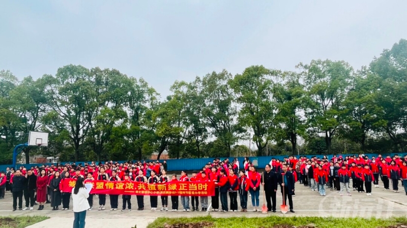 3月11日,在第47個植樹節來臨之際,沅江市蓮花塘學校與聯盟校南大膳鎮中心小學攜手開展了一場別開生面的“城鄉聯盟情意濃 共植新綠正當時”主題植樹活動。兩校行政班子及學生代表齊聚南大膳鎮中心小學,共同種下象征友誼和希望的樹苗,為春日校園增添新綠,也為城鄉教育聯盟注入新活力。