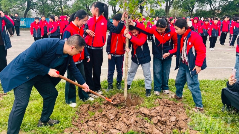 隨后,兩校師生齊心協力,共同揮鍬鏟土、扶苗澆水,種下一棵棵飽含友誼與希望的小樹苗。孩子們專注地培土、澆水,臉上洋溢著純真的笑容,仿佛在精心呵護自己的夢想。春風中,新栽的樹苗隨風輕搖,承載著兩校師生的美好祝愿,見證著城鄉教育聯盟的深厚情誼。