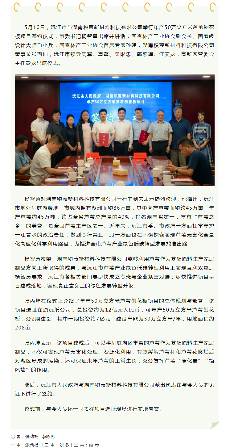年產50萬立方米蘆葦刨花板項目落戶沅江